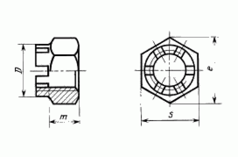 ГОСТ 5919-73. Гайки шестигранные прорезные и корончатые низкие класса точности В. Конструкция и размеры» соединений (нормальной точности