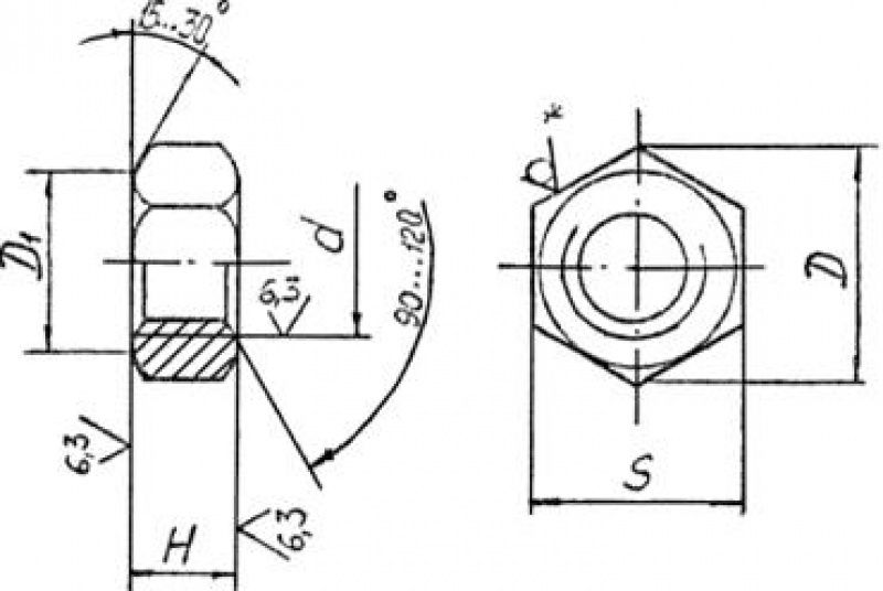 Гайки ОСТ 26-2038-96. Гайки шестигранные для Фланцевых соединений